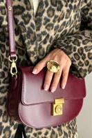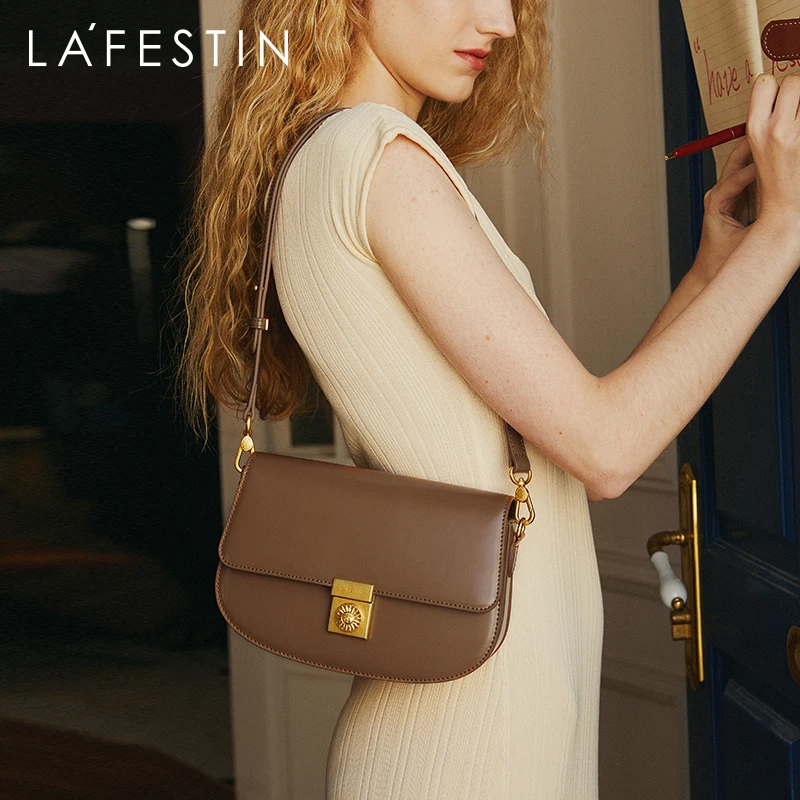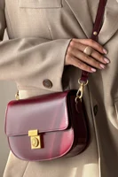 The bag is made of two-layer cut cowhide leather. The main compartment of the bag on the lock, which is clicked off with a press, is a hardware lock with a gold plated electroplating. The accessories of the bag have a decorative old-fashioned gilding effect. The shoulder strap can be adjusted freely: suitable for wearing both shoulder and hands.