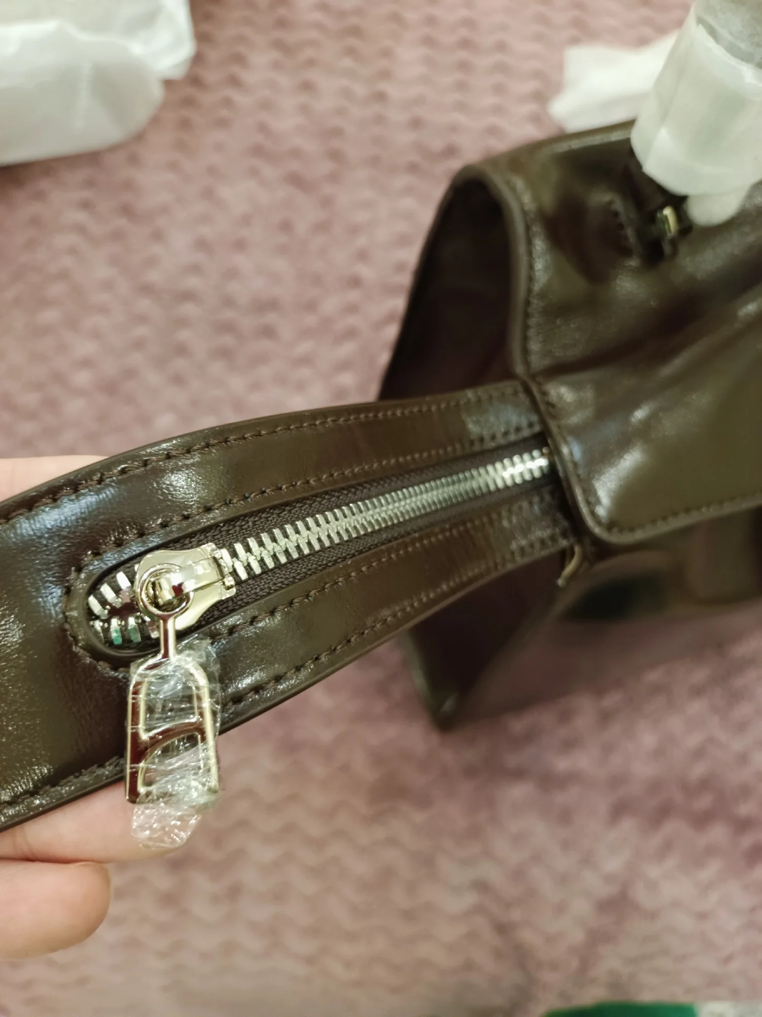 Thank you for the fast delivery! Read a lot of reviews, they are different. I’ll tell you my opinion. Packed perfectly. The bag is not standard, unusual. Interesting shape and arrangement of pens and I like it. Holds the shape well, although the skin is very soft. It smells good of skin. The color of dark chocolate. Beautiful, but it’s a pity that it’s not cherry. Inside one zippered pocket. The bag is roomy. That the pocket is on a magnet from the side and they write that it opens ugly and the lining is visible, this does not bother me. There is no need to shoved a bag of food there, this is for flat items. I liked everything and did not regret buying this bag. Thanks to designers, manufacturers and seller!❤️